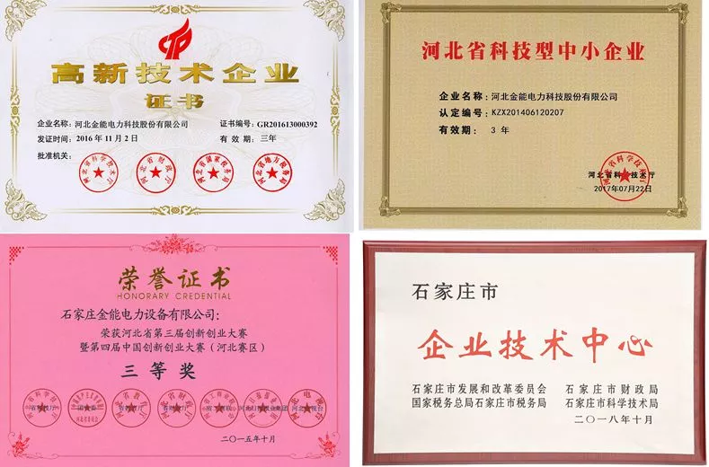 金能电力荣获“高新技术企业”、“科技型中小企业”等多项荣誉